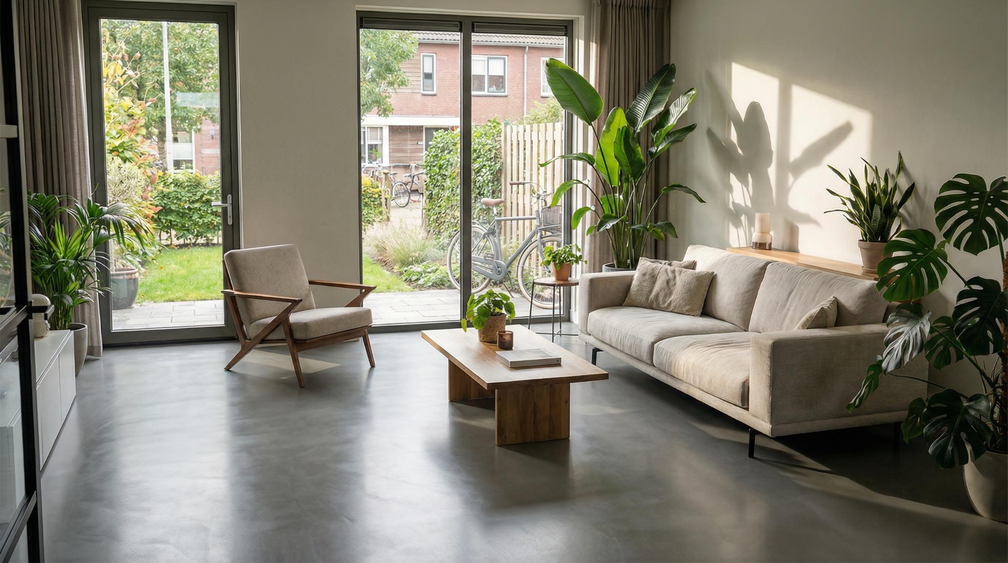 Deze gietvloer combineert de voordelen van een naadloze gietvloer met de robuuste uitstraling van natuursteen. Het resultaat is een vloer die zowel stoer als elegant is.